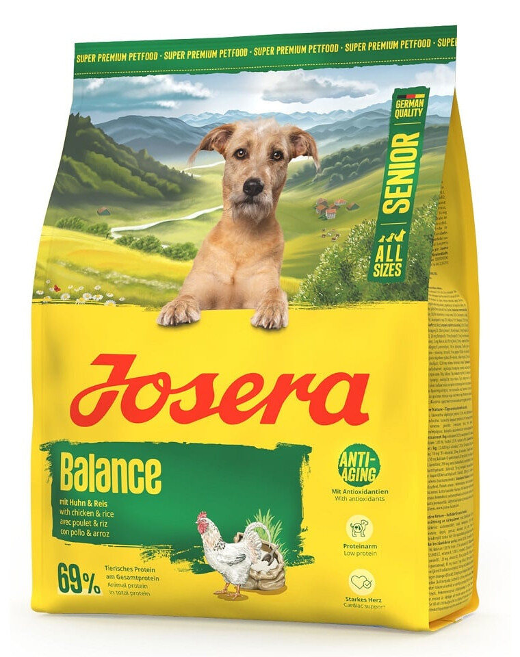 JOSERA Senior Balance to kompletna, niskotłuszczowa i niskobiałkowa sucha karma z kurczakiem i ryżem dla starszych psów o zmniejszonym zapotrzebowaniu na energię