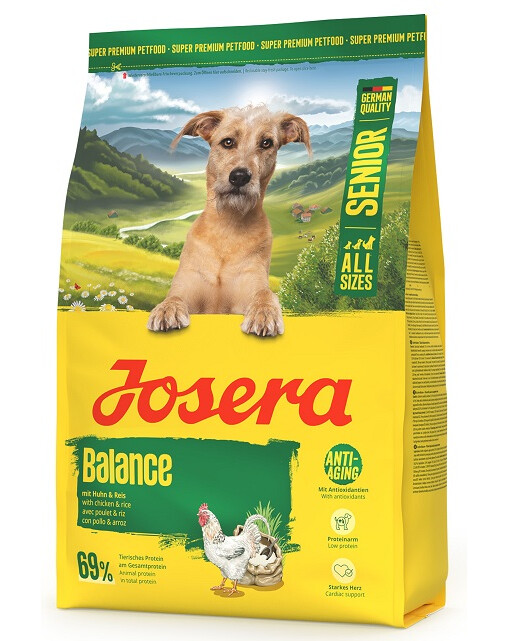 JOSERA Senior Balance to lekkostrawna sucha karma opracowana specjalnie dla starszych psów. Dzięki obniżonej zawartości białka i tłuszczu wspiera utrzymanie prawidłowej masy ciała i nie obciąża metabolizmu.