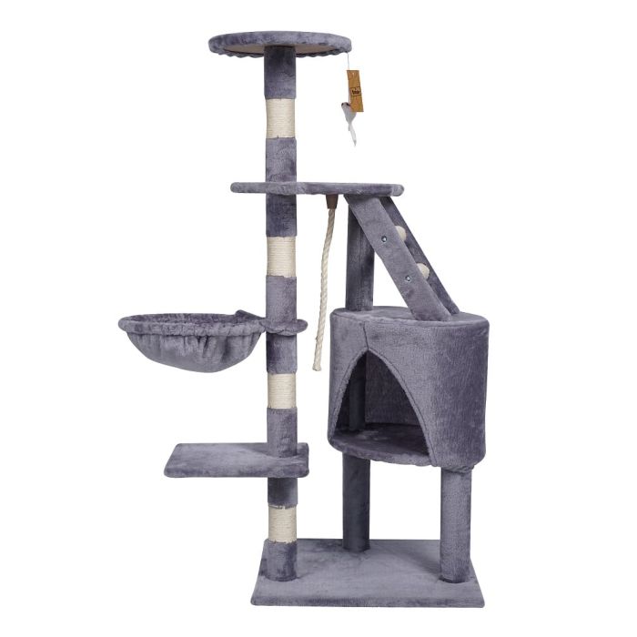Drapak posiada aż 5 opcji do odpoczynku kota - hamak, domek i trzy platformy. Wejście z domku na środkową platformę jest połączone drabinką, która dodatkowo posiada siazolowe elementy do drapania. Miękki hamak to jedna z najlepszych opcji legowiska dla kotów, nie ma kota, który się mu oprze! Dwie najwyższe platformy umożliwiają kotu obserwowanie otoczenia, domek natomiast stanowi bezpieczny azyl.