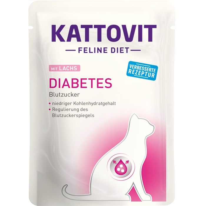 Do regulacji podaży glukozy (cukrzyca). Karma Kattovit Feline Diet - DIABETES została specjalnie opracowana z długołańcuchowymi węglowodanami dla regulowanego uwalniania glukozy. Wysoka zawartość włókna surowego (błonnika pokarmowego) w połączeniu z obniżonym poziomem tłuszczu może mieć równoważący wpływ na kształtowanie się poziomu cukru we krwi. Karma została wzbogacona o L-karnitynę. L-karnityna może wspierać rozpad rezerw tłuszczowych. Nie nadaje się dla kotów rosnących i ciężarnych. Niska zawartość mono- i disacharydów.