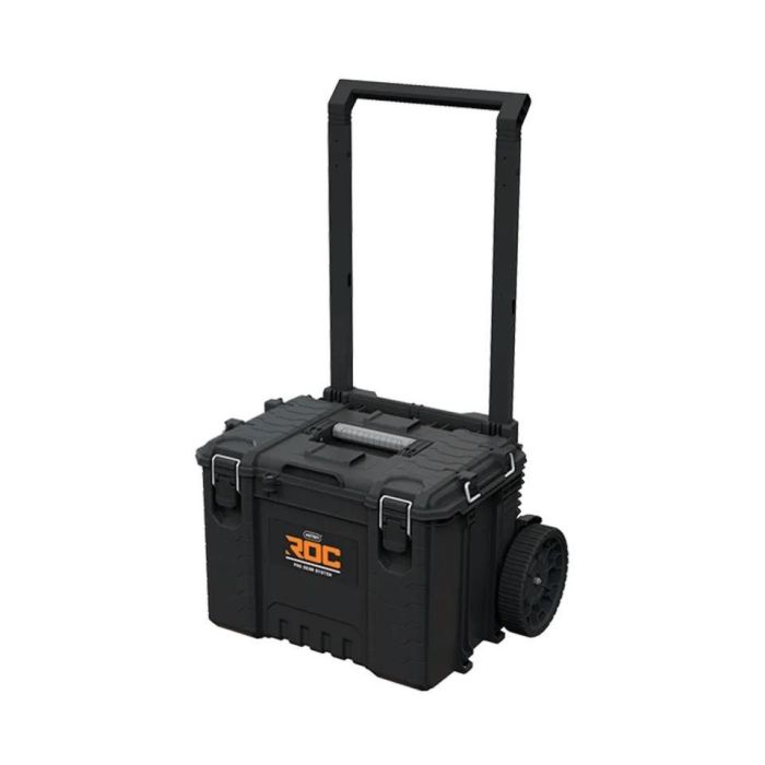Niezwykle przestronna i funkcjonalna skrzynka na kółkach ROC Pro Gear 2.0 została przeprojektowana z myślą o najbardziej wymagających użytkownikach. Wyposażona w innowacyjne rozwiązania takie jak zdejmowana teleskopowa rączka z 9-calowymi kółkami ułatwiająca załadunek do bagażnika samochodu i szybkie przenoszenie do innego boxu XL. Pudełko posiada również możliwość zawieszenia go na ścianie (po zwolnieniu uchwytu teleskopowego - uchwyt nie jest dołączony do zestawu, rozmiar L). Solidna konstrukcja pozwala na bezpieczny transport ciężkich narzędzi, a profilowana pokrywa umożliwia przymocowanie połówek modułu w celu jeszcze bardziej elastycznego przechowywania narzędzi. Skrzynka na kółkach wykonana jest z najwyższej jakości tworzywa sztucznego, charakteryzującego się dużą odpornością na uszkodzenia mechaniczne, co gwarantuje wieloletnią trwałość. Stopień ochrony IP65 zapewnia skuteczną ochronę przed wodą i kurzem, dzięki czemu skrzynka idealnie sprawdza się w każdych warunkach pogodowych. W zestawie praktyczny pojemnik do przechowywania z pokrywką, który pozwala na wygodne uporządkowanie narzędzi i akcesoriów. Funkcjonalny system mocowania skrzynki za pomocą bocznych uchwytów jest w pełni kompatybilny ze wszystkimi skrzynkami z serii Pro Gear 1.0 i ROC Pro Gear 2.0, umożliwiając elastyczne dostosowanie systemu przechowywania narzędzi do indywidualnych potrzeb. Spersonalizuj swój własny, profesjonalny system przechowywania narzędzi za pomocą ROC Pro Gear!