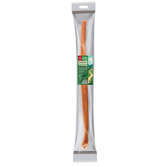 Suszona skóra wieprzowa jest w 100% naturalna, nie zawiera dodatku sztucznych aromatów, konserwantów i barwników. Naturalne gryzaki są produktami twardymi o wyjątkowym mięsnym aromacie, zapewnią psu zajęcie przez długi czas. Dodatkowo pomagają zachować prawidłową higienę jamy ustnej, dostarczają psu wiele zabawy i zaspokoją naturalną potrzebę gryzienia i żucia.