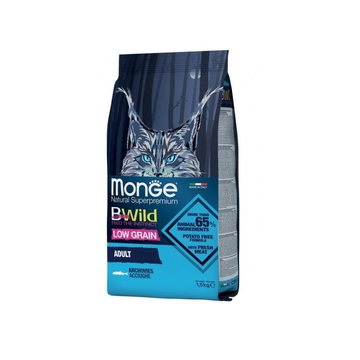MONGE BWild Anchois bezzbożowa karma dla dorosłego kota ze szprotkami 1,5 kg