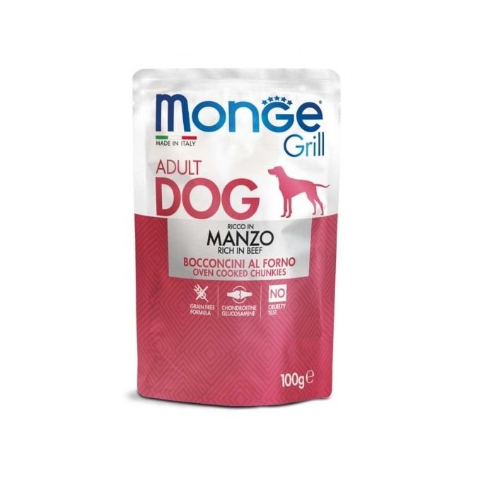 Kompletna mokra karma dla dorosłych psów, stworzona na bazie perfekcyjnie grillowanego mięsa z wołowiną. Zawiera chondroitynę i glukozaminę potrzebne dla prawidłowego rozwoju stawów. Jest to produkt bezzbożowy.