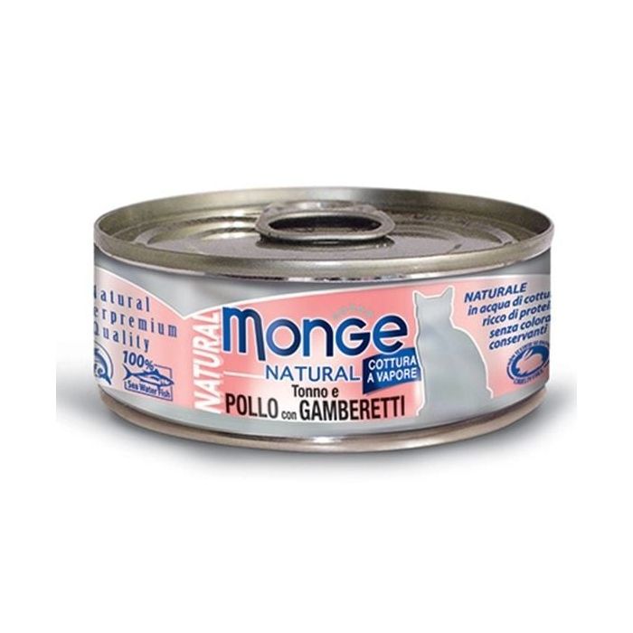 MONGE Natural Cat Tuńczyk z kurczakiem i krewetkami 80g
