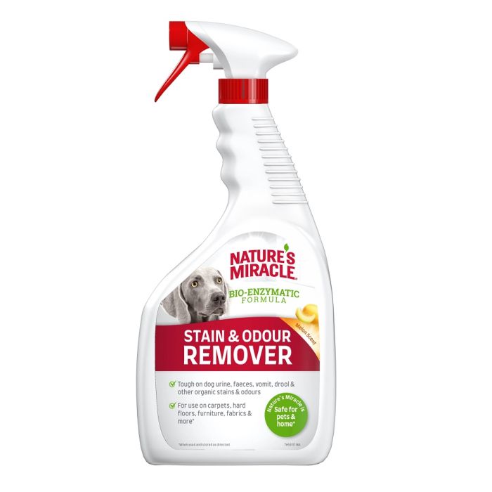 Nature's Miracle® Stain & Odour Remover to środek przeznaczony do łatwego usuwania codziennych zabrudzeń po psach. Bioenzymatyczna formuła oparta na bakteriach wytwarza enzymy, które usuwają organiczne plamy i działają tak długo, dopóki nie usuną zabrudzeń i nieprzyjemnych zapachów.