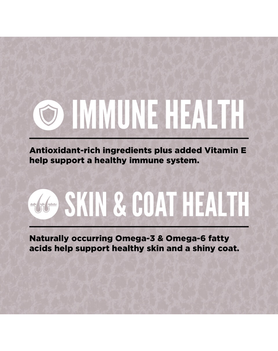 Karma bazuje na kurczaku, indykach, podrobach, rybach z naturalnych połowów oraz na świeżych jajach ściółkowych. Mięsa te są delikatne i dobrze strawne, natomiast ryby - m.in. sardynki, śledzie, są bogatym źródłem nienasyconych kwasów tłuszczowych Omega-3 i -6 oraz zdrowych tłuszczy. Omega-3 i -6 wzmacniają serce i układ nerwowy psa, a także dbają o zdrowy wygląd jego skóry i sierści. Owoce, zioła i warzywa, jak np. dynie, dynie piżmowe, jabłka zawierają błonnik.
