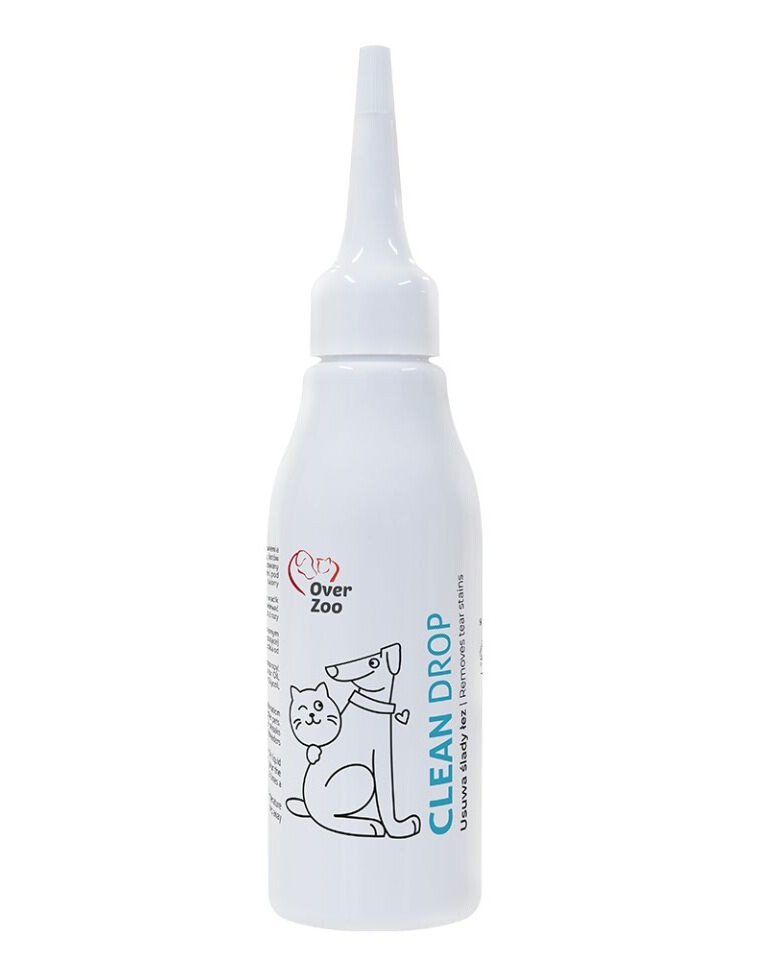 OVER ZOO Clean Drop to specjalistyczny płyn przeznaczony do redukowania przebarwień powstających w wyniku nadmiernego łzawienia u psów, kotów oraz innych małych zwierząt domowych. Regularne stosowanie pomaga ograniczyć widoczne zacieki pod oczami i poprawić estetykę okolicy oczu. Produkt jest chętnie wykorzystywany zarówno przez hodowców, jak i profesjonalne salony groomerskie.