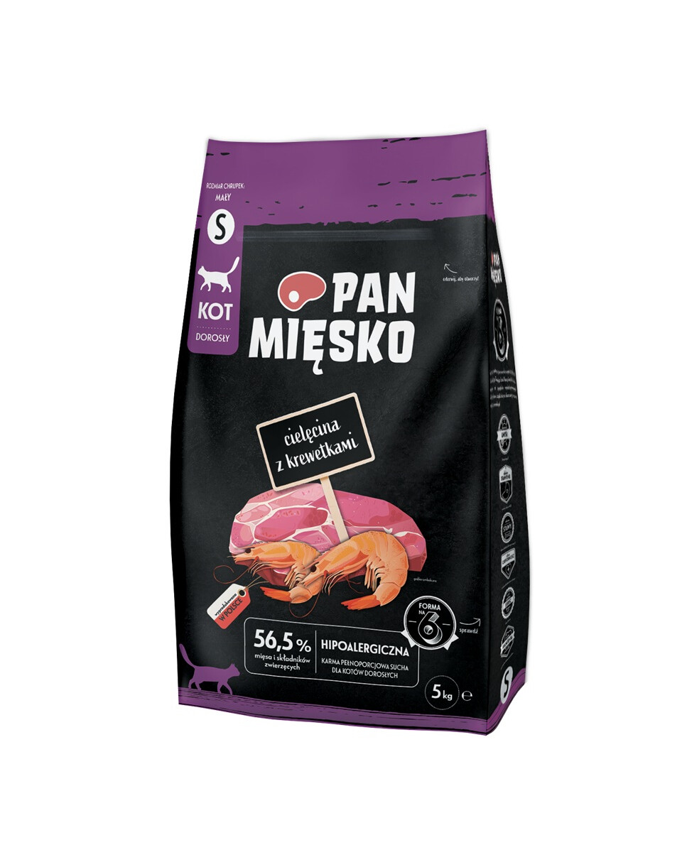 Poznaj suche karmy dla kotów Pan Mięsko. Wyróżniają je starannie wyselekcjonowane składniki z dodatkiem soczystych polskich jabłek, zdrowych warzyw i cennych składników odżywczych, które pozytywnie wpłyną na zdrowie oraz kondycje Twojego kota. Nasze receptury zostały przygotowane przez specjalistów, po to, aby dostarczyć Twojemu czworonożnemu towarzyszowi dokładnie to, czego potrzebuje. Twój kot zasługuje na wszystko, co najlepsze.