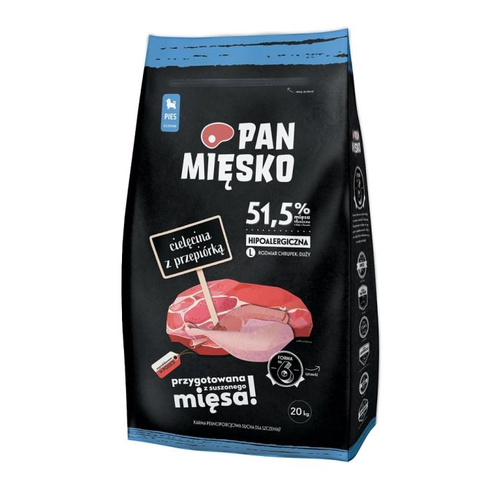 PAN MIĘSKO Cielęcina z przepiórką dla szczeniąt chrupki L 20 kg