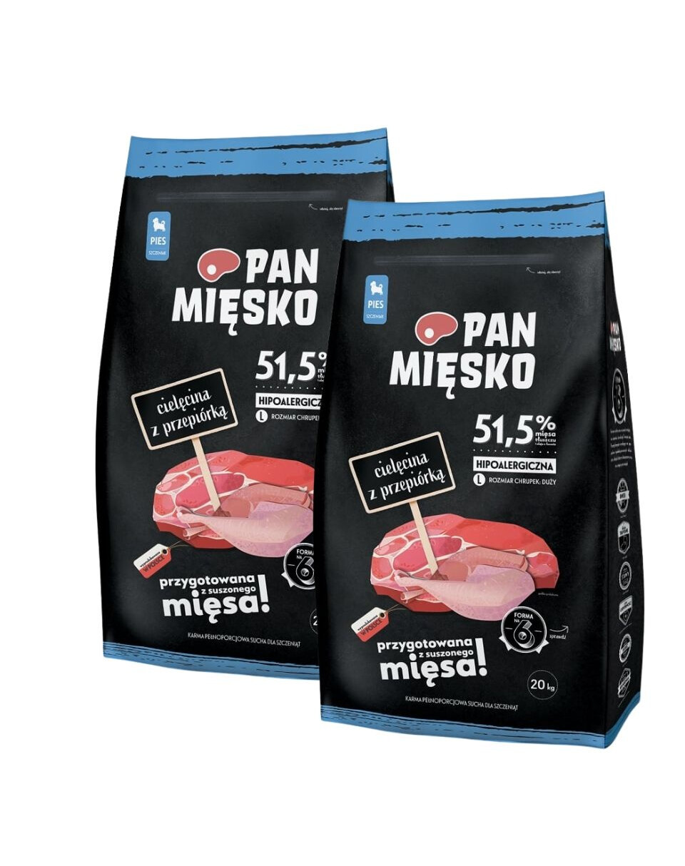 Poznaj suche karmy dla psów Pan Mięsko. Wyróżniają je starannie wyselekcjonowane składniki z dodatkiem soczystych polskich jabłek, zdrowych warzyw i cennych składników odżywczych, które pozytywnie wpłyną na zdrowie oraz kondycje Twojego psa. Nasze receptury zostały przygotowane przez specjalistów, po to, aby dostarczyć Twojemu czworonożnemu towarzyszowi dokładnie to, czego potrzebuje. Twój pies zasługuje na wszystko, co najlepsze.