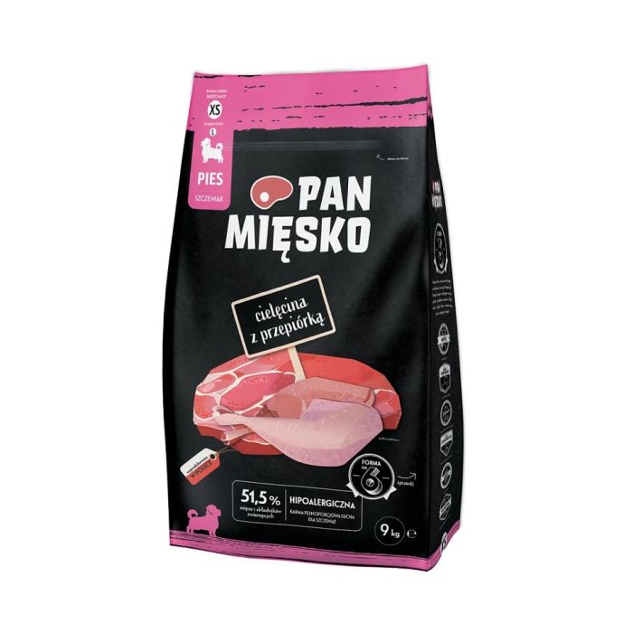 PAN MIĘSKO Cielęcina z przepiórką dla szczeniąt chrupki XS 3 kg