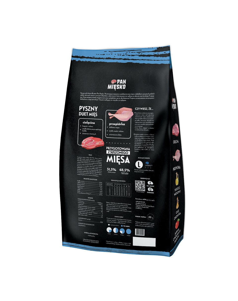 Poznaj suche karmy dla psów Pan Mięsko. Wyróżniają je starannie wyselekcjonowane składniki z dodatkiem soczystych polskich jabłek, zdrowych warzyw i cennych składników odżywczych, które pozytywnie wpłyną na zdrowie oraz kondycje Twojego psa. Nasze receptury zostały przygotowane przez specjalistów, po to, aby dostarczyć Twojemu czworonożnemu towarzyszowi dokładnie to, czego potrzebuje. Twój pies zasługuje na wszystko, co najlepsze.
