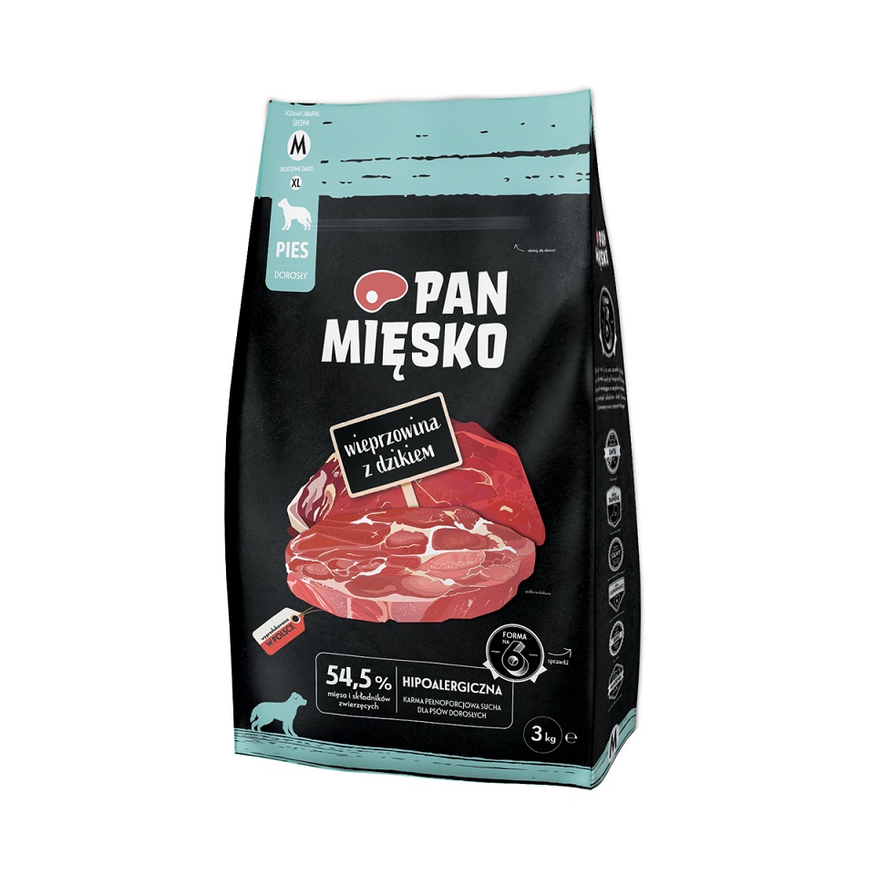 Poznaj suche karmy dla psów Pan Mięsko. Wyróżniają je starannie wyselekcjonowane składniki z dodatkiem soczystych polskich jabłek, zdrowych warzyw i cennych składników odżywczych, które pozytywnie wpłyną na zdrowie oraz kondycje Twojego psa. Nasze receptury zostały przygotowane przez specjalistów, po to, aby dostarczyć Twojemu czworonożnemu towarzyszowi dokładnie to, czego potrzebuje. Twój pies zasługuje na wszystko, co najlepsze.