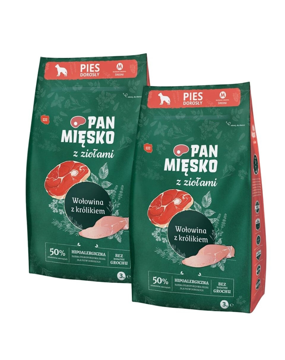 PAN MIĘSKO z ziołami Wołowina z królikiem M 2x3 kg dla ras średnich