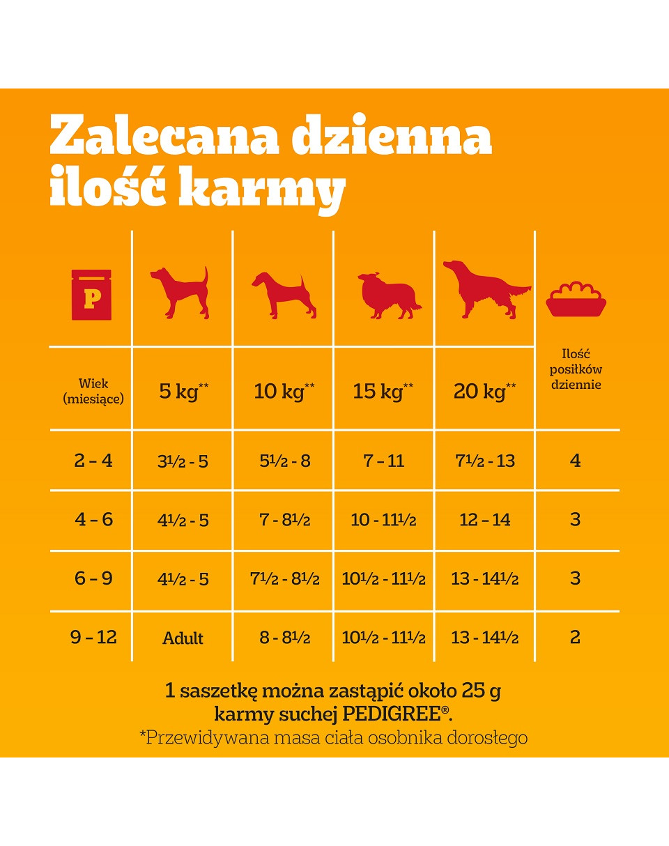 1 saszetkę można zastąpić około 25 g karmy suchej PEDIGREE.