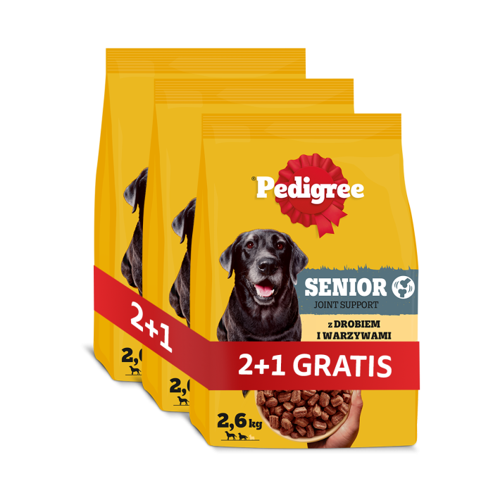 PEDIGREE Senior z drobiem i warzywami 3x2,6 kg sucha karma dla starszych psów