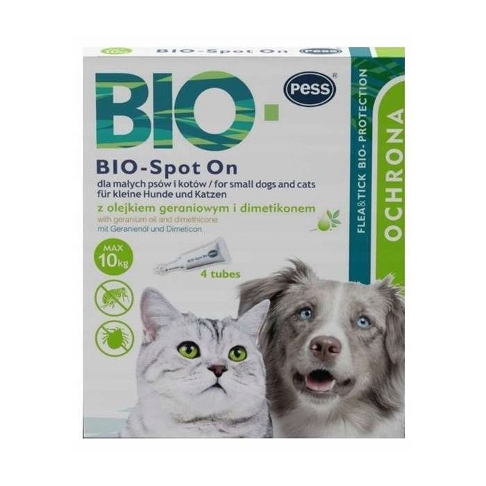 PESS BIO Spot-on krople na kleszcze i pchły dla małych psów i kotów 4x1 g z olejkiem geraniowym i dimetikonem