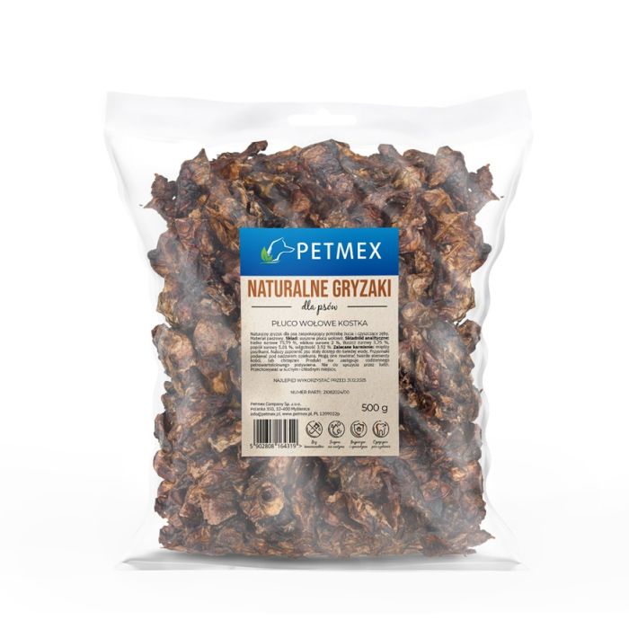 PETMEX płuco wołowe kostka – naturalny, chrupiący przysmak dla psa