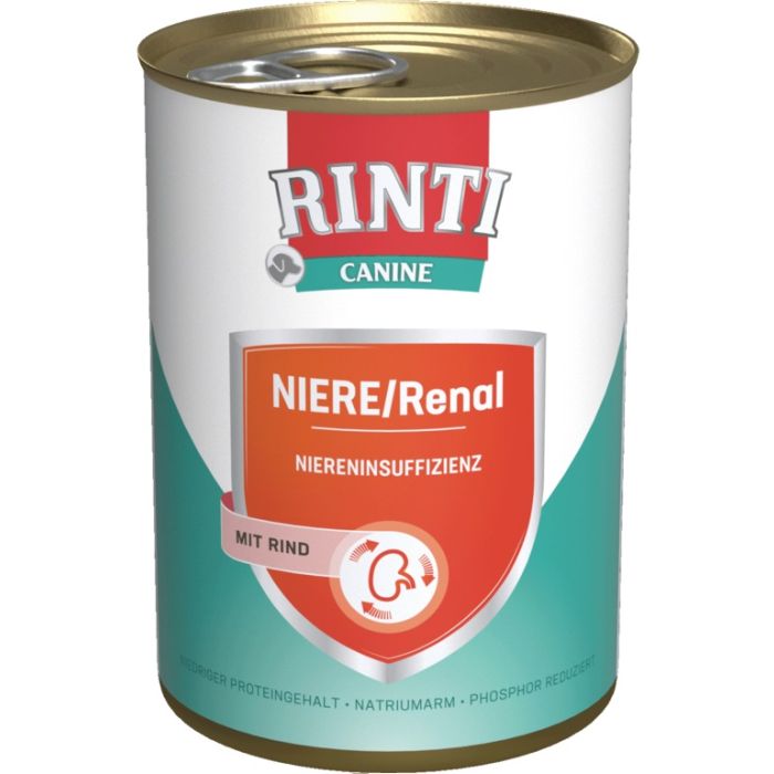 W celu wsparcia funkcji nerek w przewlekłej lub ostrej niewydolności nerek. Rinti Canine Kidney/Renal (low protein) została specjalnie opracowana, aby dostarczyć psom zredukowane i wysokiej jakości białko w łatwo przyswajalnej kompozycji. Wysoki poziom białka może mieć szkodliwy wpływ na nerki. Obniża się poziom sodu i fosforu.