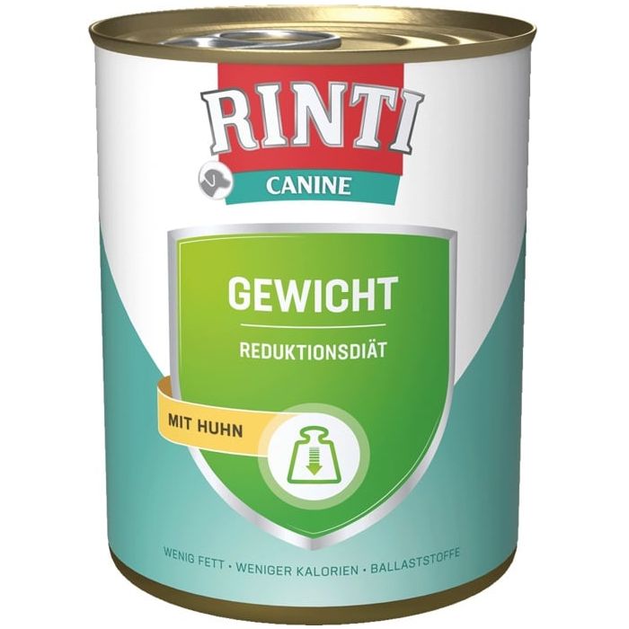 Do redukcji nadwagi. Rinti Canine Weight została opracowana specjalnie dla psów z nadwagą, ze znacznie obniżoną zawartością energii i zwiększoną ilością włókna, dzięki czemu pies nie jest narażony na ciągłe stany głodu. Karma jest wzbogacona o L-karnitynę. Mówi się, że zmienia to metabolizm i tym samym przyczynia się do redukcji wagi. L-karnityna może wspierać rozpad rezerw tłuszczowych. Należy całkowicie unikać dodawania smakołyków i kąsków do nagród.