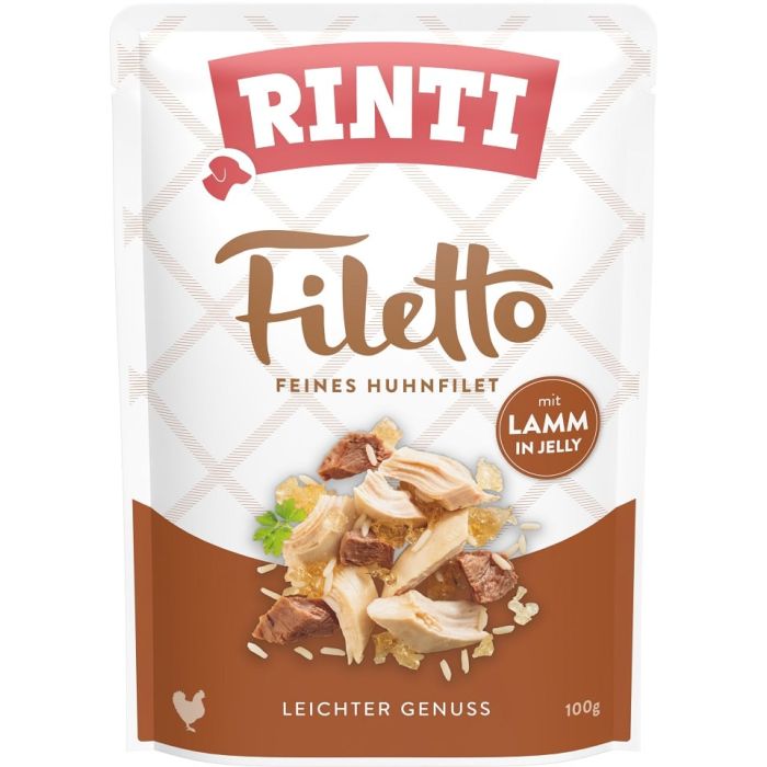 RINTI Filetto to uzupełniająca karma z kurczakiem i jagnięciną w aromatycznej galaretce dla psów dorosłych wszystkich ras.