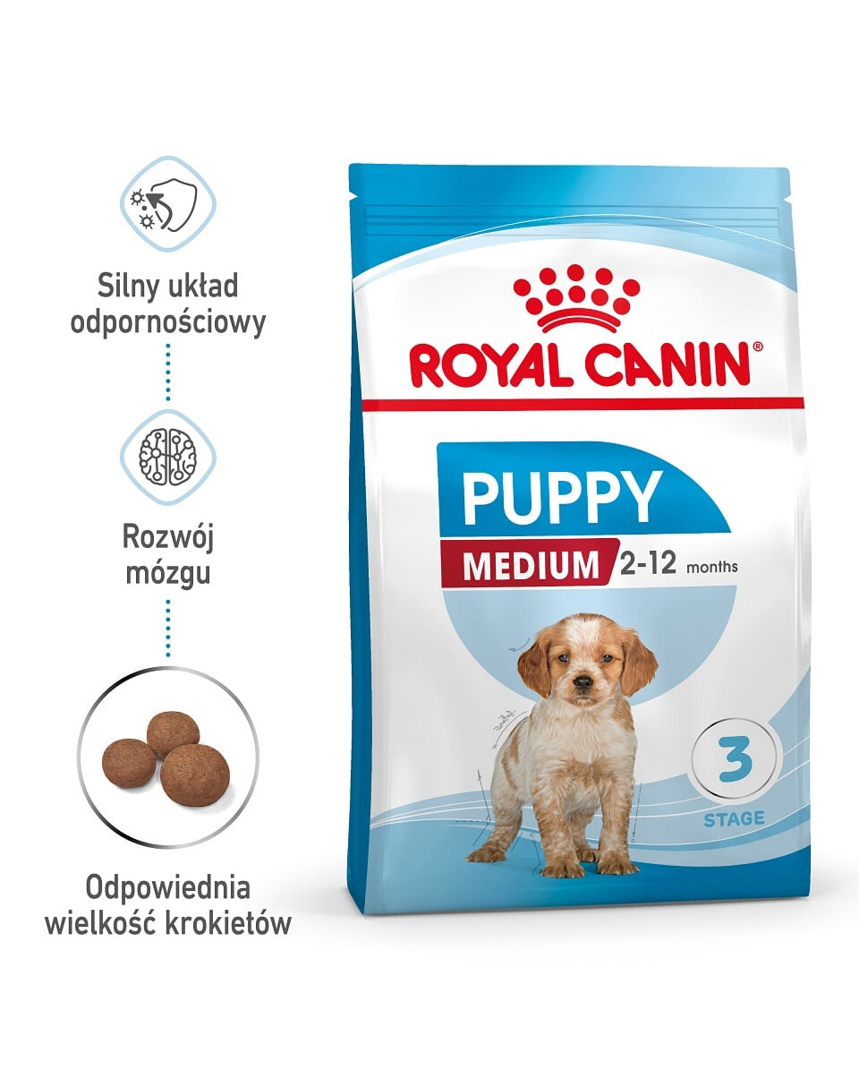 Karma sucha ROYAL CANIN® Medium Puppy została specjalnie opracowana, aby pokrywać w pełni potrzeby pokarmowe szczeniąt ras średnich. Karma jest przeznaczona dla szczeniąt w wieku od 2 do 12 miesięcy, które po zakończeniu wzrostu osiągną masę ciała 11-25 kg.