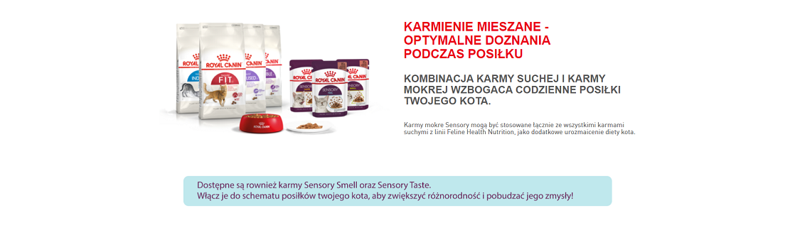 Aby zaspokoić indywidualne preferencje każdego kota, linia karm ROYAL CANIN® Sensory obejmuje również produkty Sensory Taste i Sensory Smell, każdy z własną atrakcyjną formułą, która pobudza apetyt Twojego kota i zapewnia bogate sensorycznie doznania podczas karmienia. Włącz je do schematu posiłków twojego kota, aby zwiększyć różnorodność i pobudzać jego zmysły!