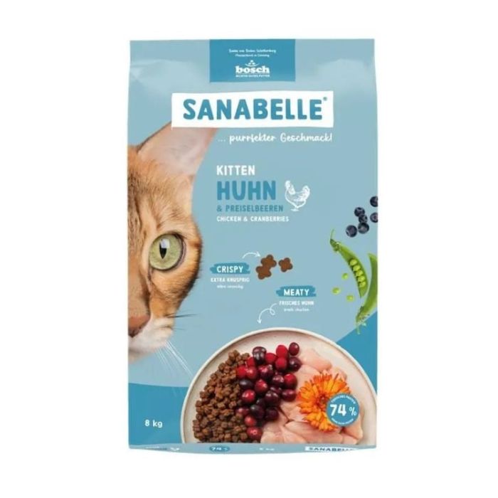 Sanabelle Kitten Kurczak to pełnoporcjowa, sucha karma klasy premium, opracowana specjalnie z myślą o potrzebach kociąt do 12. miesiąca życia oraz kotek w ciąży i okresie laktacji. Zbilansowana receptura z wysokiej jakości składnikami wspiera prawidłowy rozwój młodych kotów, a także zapewnia odpowiednie odżywienie kotkom w fazie rozrodu.