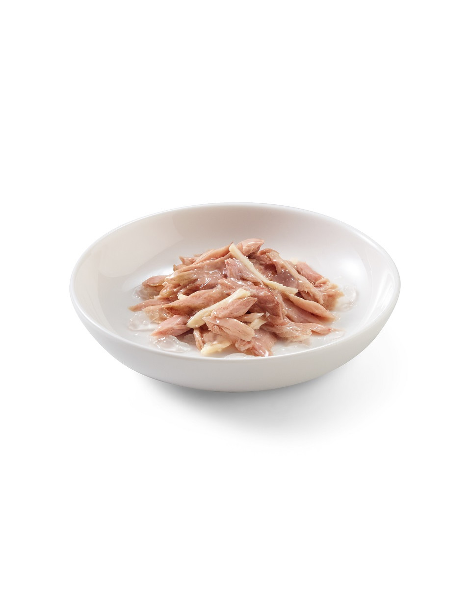 Prawdziwe filety z tuńczyka gotowane na parze z kurczakiem w galaretce – naturalna i nieodparta mieszanka.