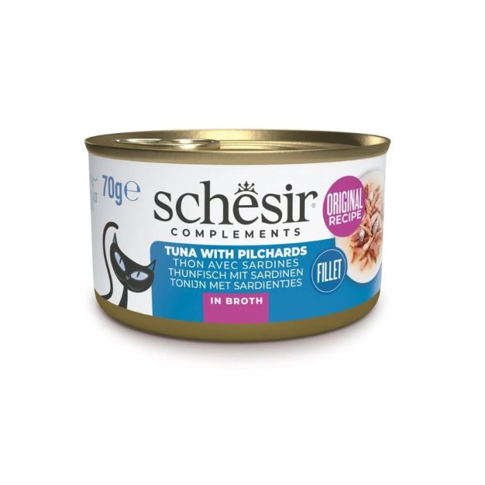 SCHESIR Tuńczyk z sardynką w bulionie dla kotów 70 g