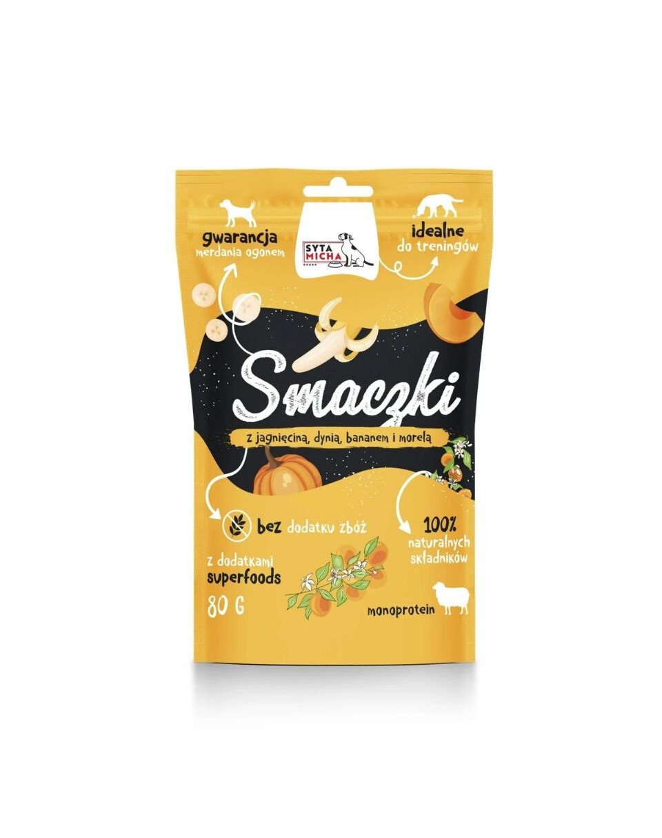 Aromatyczne, naturalne przysmaki treningowe o śrutowatym kształcie, stworzone z jagnięciny wzbogaconej owocami i warzywami. Idealne jako szybka, zdrowa nagroda dla psów w każdym wieku — od szczeniąt po seniorów.