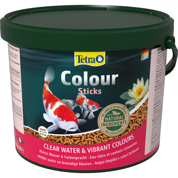 Tetra Pond Colour Sticks to pokarm w postaci unoszacych się na powierzchni wody pałeczek. Wzmacnia intensywność naturalnego ubarwienia ryb gdyż zawiera karotenoidy, które w naturalny sposób wzmacniają intensywność czerwonych, żółtych i pomarańczowych barwników. Dodatkowo pokarm zawiera wszystkie niezbędne składniki odżywcze, błonnik, substancje anaboliczne, witaminy oraz mikroelementy.