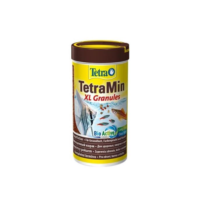 - Kompletny pokarm w postaci drobnoziarnistych granulek dla większych słodkowodnych ryb ozdobnych