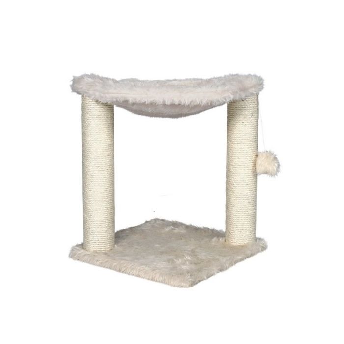 Funkcjonalny i przytulny drapak, idealny dla kotów w każdym wieku. Wyposażony w dwa sizalowe słupki (9 × 43 cm) do drapania, puszyste legowisko (53 × 40 cm) na szczycie oraz zabawkę na gumce, która zachęca do aktywności. Całość wykończona miękkim, kudłatym pluszem, który zapewnia komfort i estetyczny wygląd.