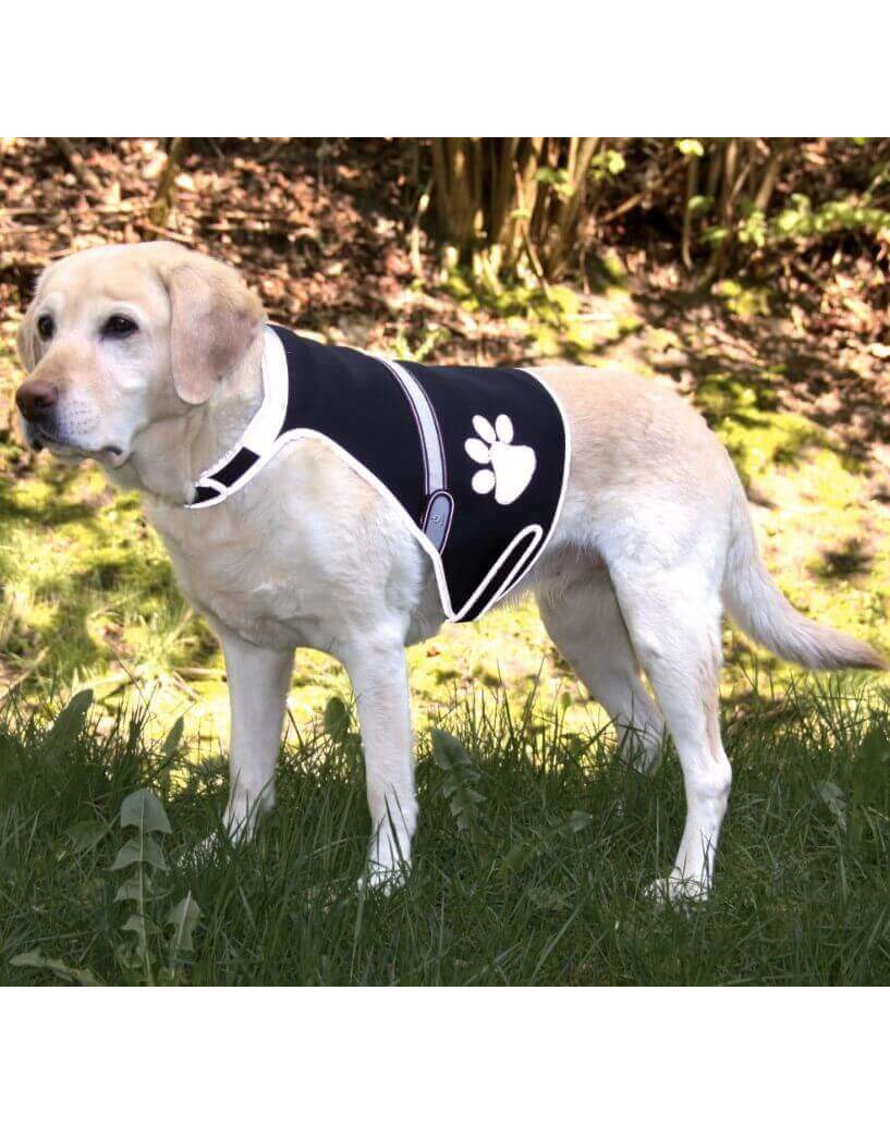 Regulowana przy brzuchu i karku, zapinana na rzepy - pozwala to idealnie dopasować kamizelkę do wymiarów psa. Dodatkowe elementy odblaskowe zwiększają bezpieczeństwo psa i właściciela.