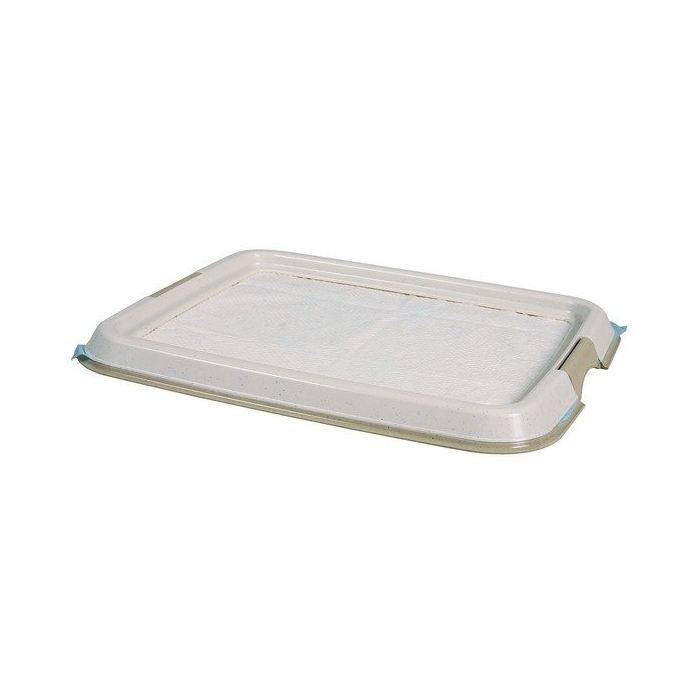 Produkt składa się z trwałej, plastikowej podstawy oraz składanej ramki, która stabilnie utrzymuje wkład higieniczny (do dokupienia osobno) i zapobiega jego przesuwaniu się lub gryzieniu przez zwierzę. Dzięki antypoślizgowym gumowym nóżkom kuweta nie ślizga się po podłodze, co zapewnia bezpieczne użytkowanie nawet na gładkich powierzchniach.