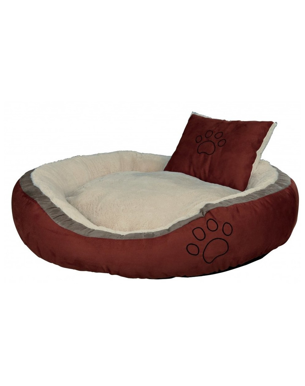 Legowisko z pluszu i materiału zamszo-podobnego. W zestawie poduszka, pokrycie i poduszkę można prać ręcznie w 30 stopniach.