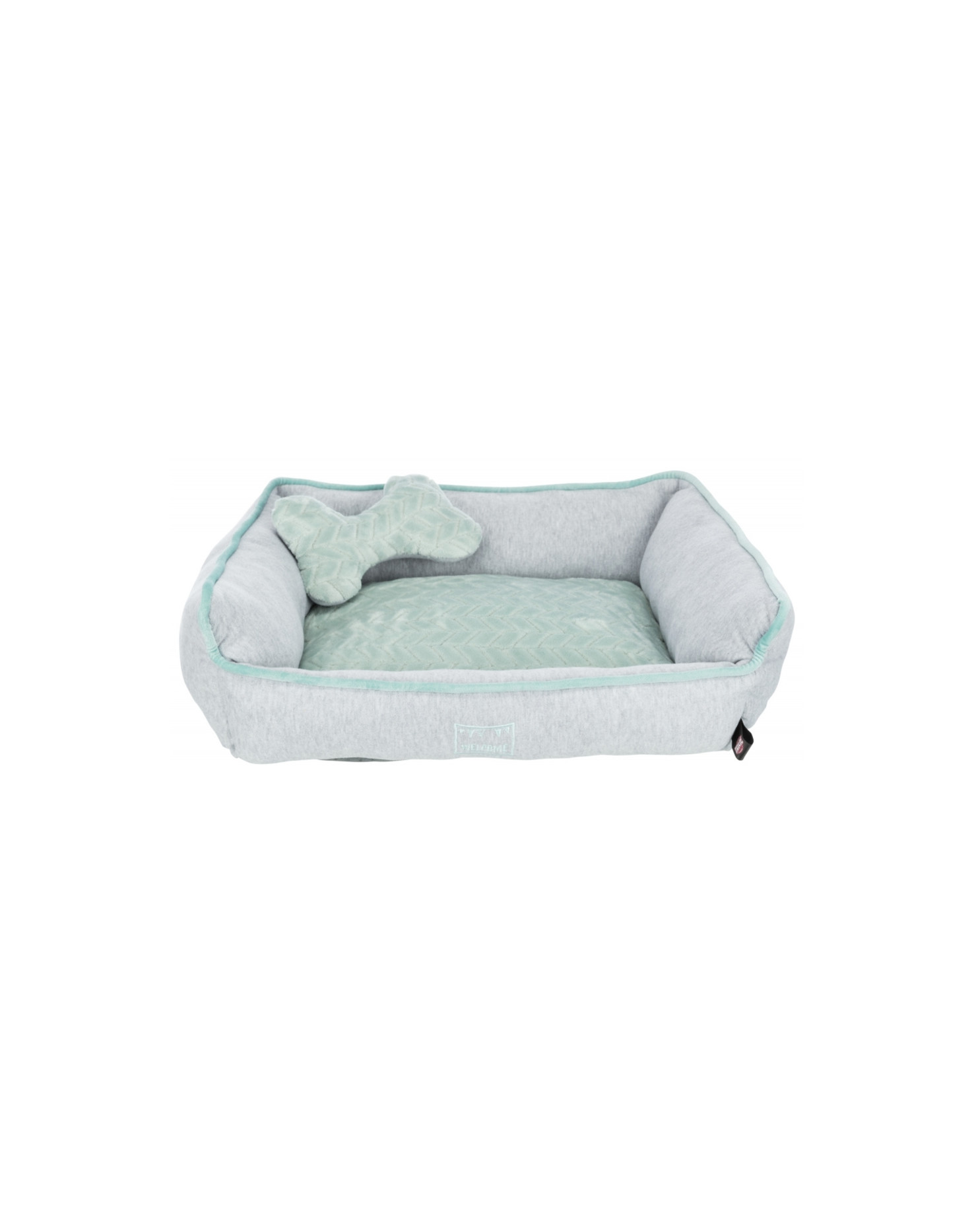 Legowisko dla szczeniaka z miękkiej dzianiny i pluszu. Ma wypełnienie z flauszu poliestrowego. Do legowiska dołączona jest zabawka - kość.