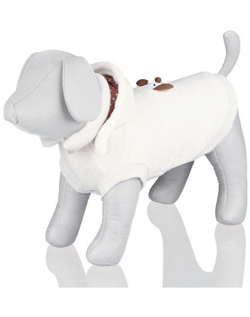 Wykonana z wysokiej jakości syntetycznej wełny, wewnętrzna strona jest miękka i przyjemna w dotyku. Ściągacze przy szyi, łapach i dole bluzy, a także zapięcia na zatkrzaski zapewniają dobre przyleganie ubranka do ciała. Pętelki na tyle łapy uniemożliwiają przesuwanie się kurtki. Na grzbiecie znajduje się podobizna głowy psa. Całokształt sprawia, że kurtka jest wyjątkowo urokliwa.