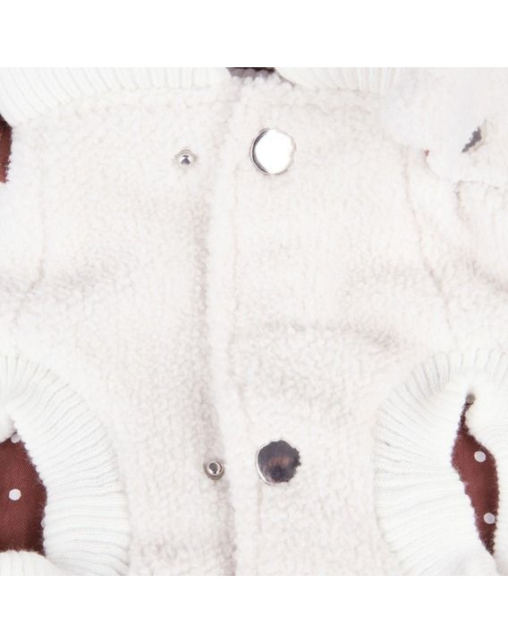 Wykonana z wysokiej jakości syntetycznej wełny, wewnętrzna strona jest miękka i przyjemna w dotyku. Ściągacze przy szyi, łapach i dole bluzy, a także zapięcia na zatkrzaski zapewniają dobre przyleganie ubranka do ciała. Pętelki na tyle łapy uniemożliwiają przesuwanie się kurtki. Na grzbiecie znajduje się podobizna głowy psa. Całokształt sprawia, że kurtka jest wyjątkowo urokliwa.