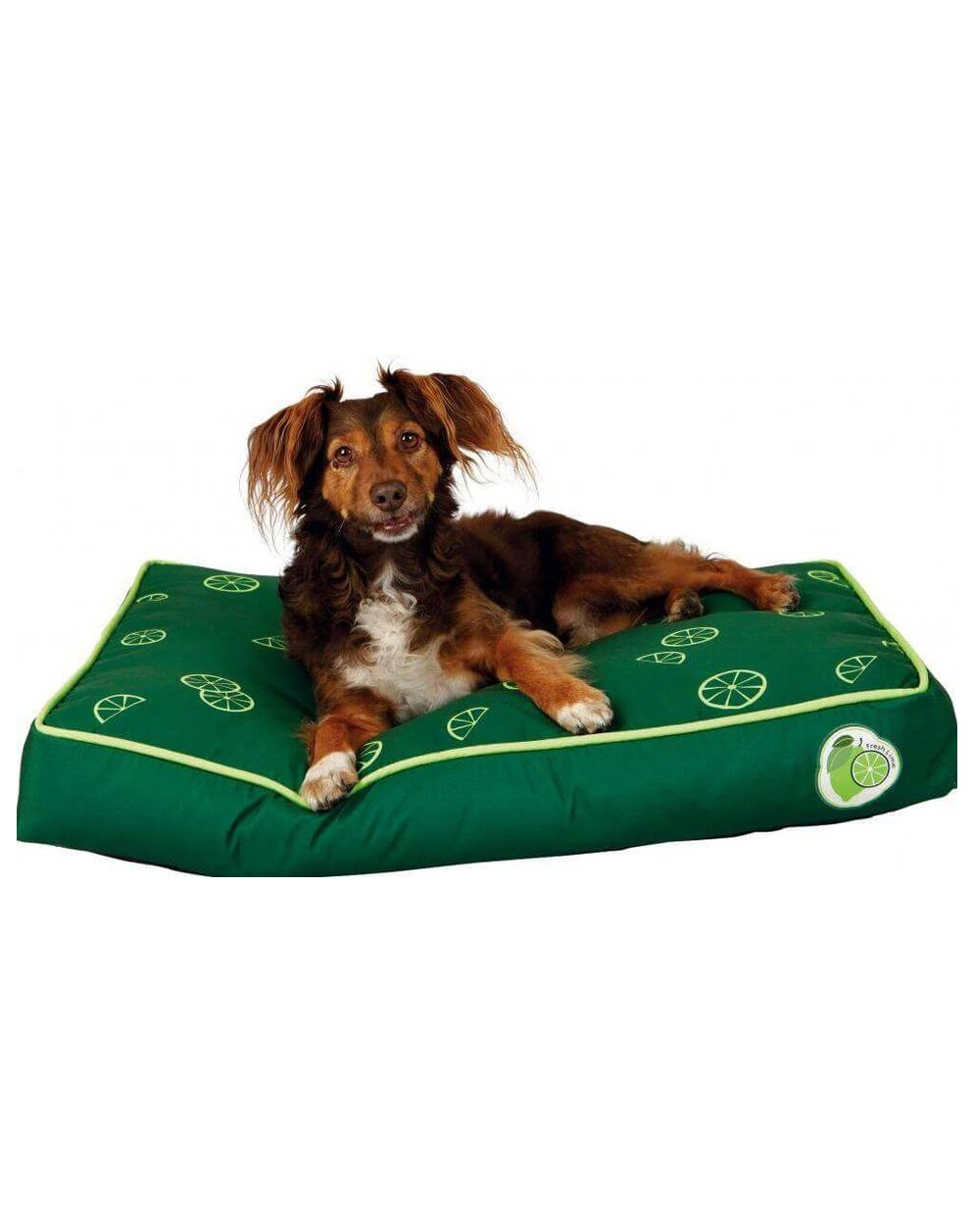 Legowisko z obiciem z poliestru. W środku wypełnienie flauszem. Antypoślizgowa podstawa zapobiega ślizganiu się poduszki.