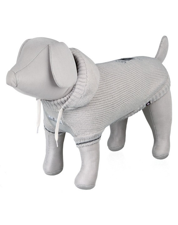 Syntetyczna wełna świetnie grzeje, jest przyjemna w dotyku i dobrze dopasowuje się do sylwetki i nie krępuje ruchów. Posiada kaptur, który można odpinać na zamek, a także miejsce na wpięcie smyczy. Jasne kolory sweterka zwiększają widoczność psa po zmroku.