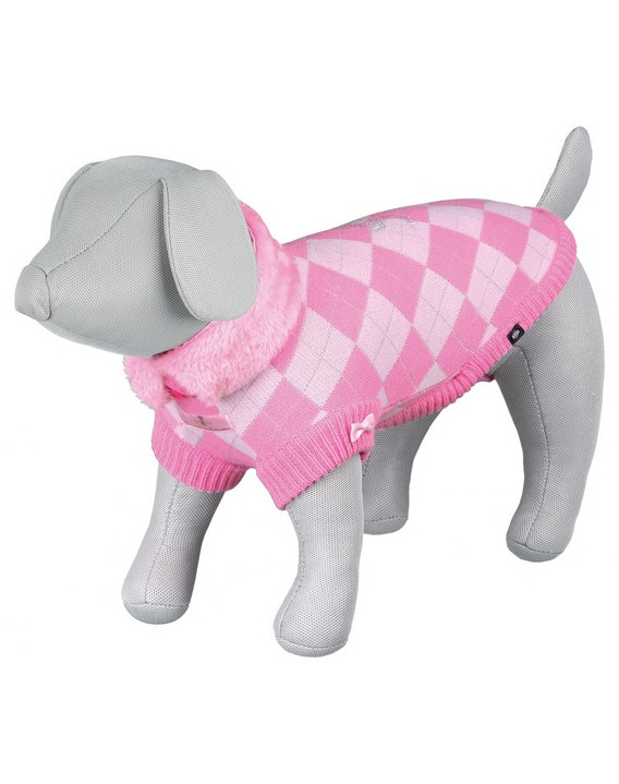 Zaprojektowany przez księżniczkę Maję von Hohenzollern, pochodzi z ekskluzywnej serii PRINCESS. Syntetyczna wełna zapewnia komfort termiczny, jest miękka i wygodna w noszeniu. Ubranko ma miejsce na wpięcie smyczy oraz wysoki kołnierzyk z futerkiem, który można odpinać. Kształt sweterka został doposowanby do fizjonomii psów, nie przeszkadza w poruszaniu się i wypróżnianiu. Różowe kokardki umieszczone na rękawkach dodają uroku całości. Sweterek dla prawdziwych dam!