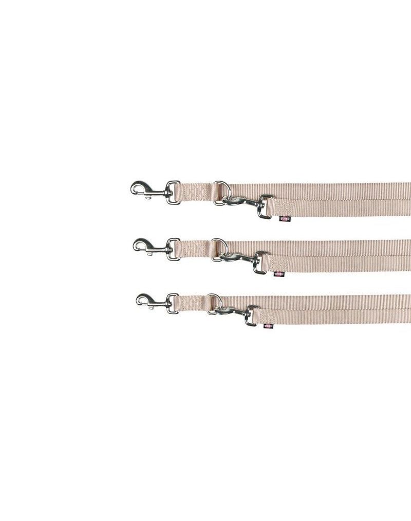 Smycz Premium Trixie wykonana jest z bardzo wytrzymałego nylonu. Metalowy karabińczyk ułatwia zapinanie i odpinanie obroży. Rękojeść została dodatkowo wyposażona w miękką i przyjemną gąbczastą tkaniną, która zwiększa komfort spacerów. Smycz posiada 3 stopniową regulację długości.