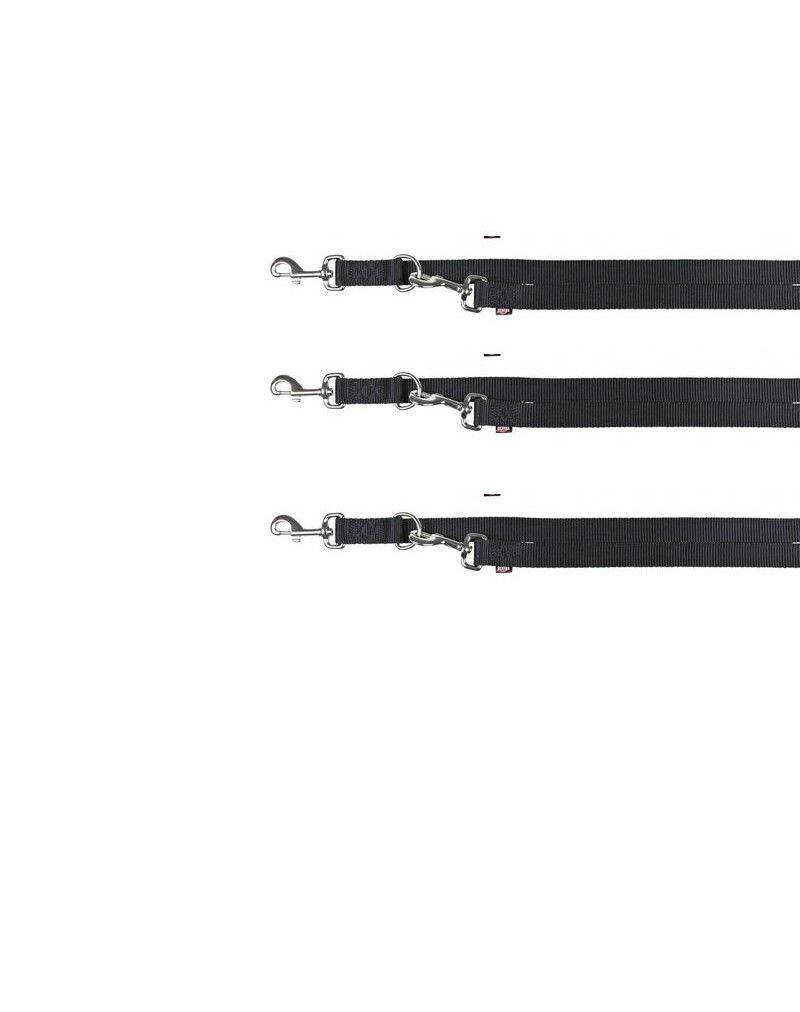 Smycz Premium Trixie wykonana jest z bardzo wytrzymałego nylonu. Metalowy karabińczyk ułatwia zapinanie i odpinanie obroży. Rękojeść została dodatkowo wyposażona w miękką i przyjemną gąbczastą tkaniną, która zwiększa komfort spacerów. Smycz posiada 3 stopniową regulację długości.