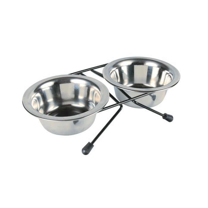 - 2 miski ze stali nierdzewnej na stojaku