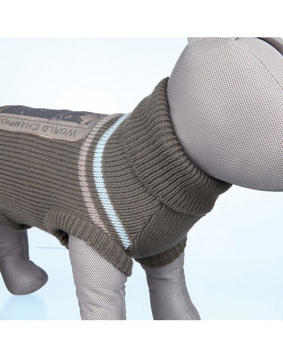 Dobrze dopasowany i przylegający, posiada ściągacze na łapy. Na plecach widnieje naszywka z napisem "Best of all breeeds. World champion". Miękki materiał jest przyjemny dla skóry.