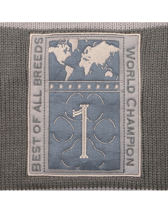 Dobrze dopasowany i przylegający, posiada ściągacze na łapy. Na plecach widnieje naszywka z napisem "Best of all breeeds. World champion". Miękki materiał jest przyjemny dla skóry.