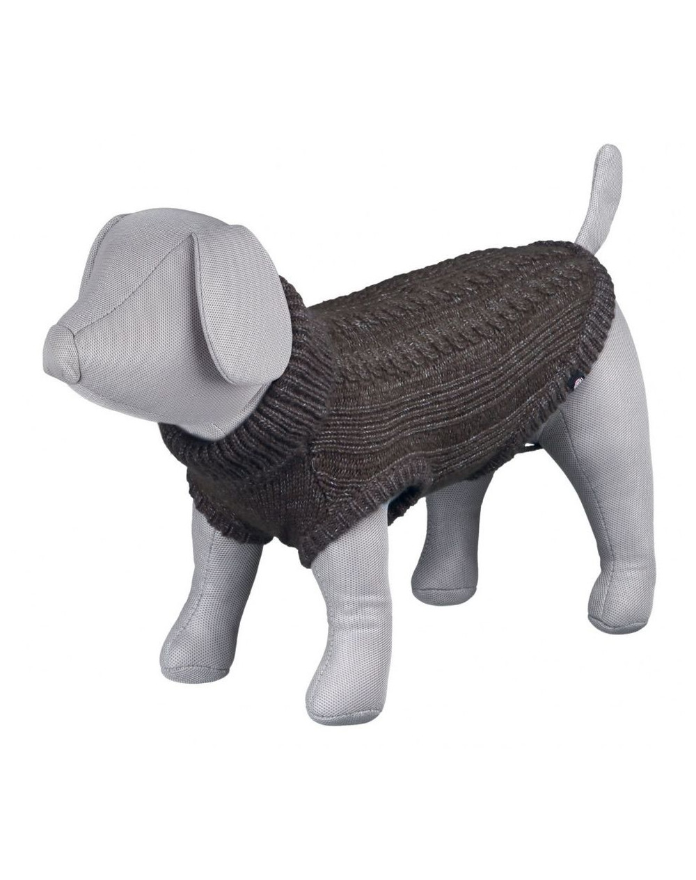 Bardzo dobrze leży i dopasowuje się do ciała. Pętelki na tylne nogi zapobiegają przesuwaniu się, a jednocześnie nie krępują ruchów. Ubranko wykonane jest z syntetycznej wełny, posiada miejsce na wpięcie smyczy. Wzór na sweterku dodaje klasy i elegancji.